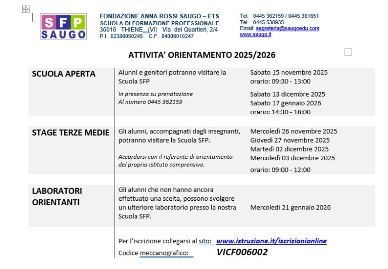Se hai bisogno di informazioni o supporto per effettuare l’iscrizione contatta la segreteria allo 0445 362159.